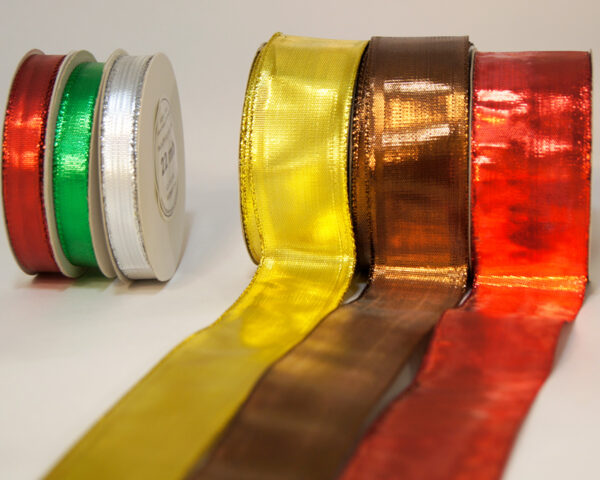 W naszej ofercie dostępne są następujące szerokości: 6 mm, 12 mm, 18 mm, 25 mm, 38 mm. Oferujemy w rolkach po 32 m oraz w kawałkach po 1,5 m dedykowanych do przewiązania jednego prezentu.
