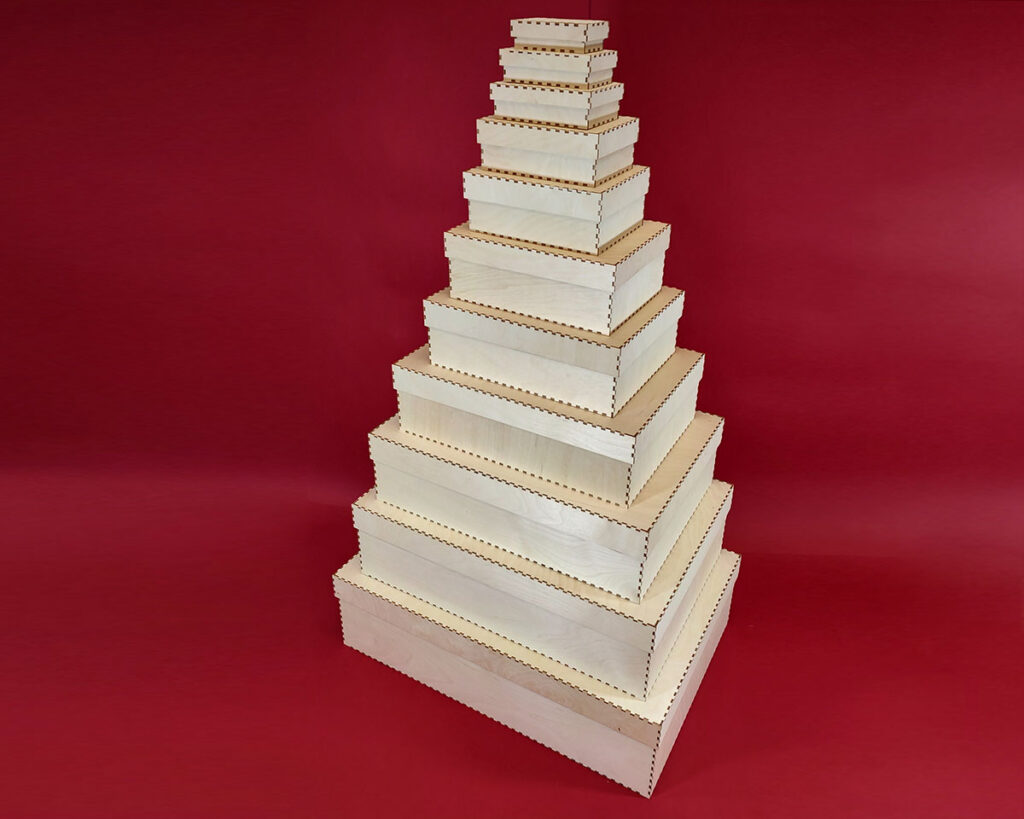 Pudełka ze sklejki oferujemy w różnych kształtach i konstrukcjach. Wymiary, kształt i konstrukcję dopasowujemy do przedmiotu, który ma być zapakowany oraz do preferencji klienta.